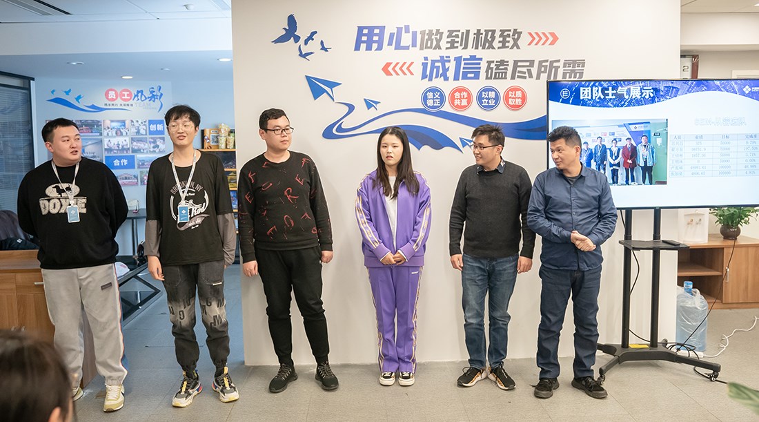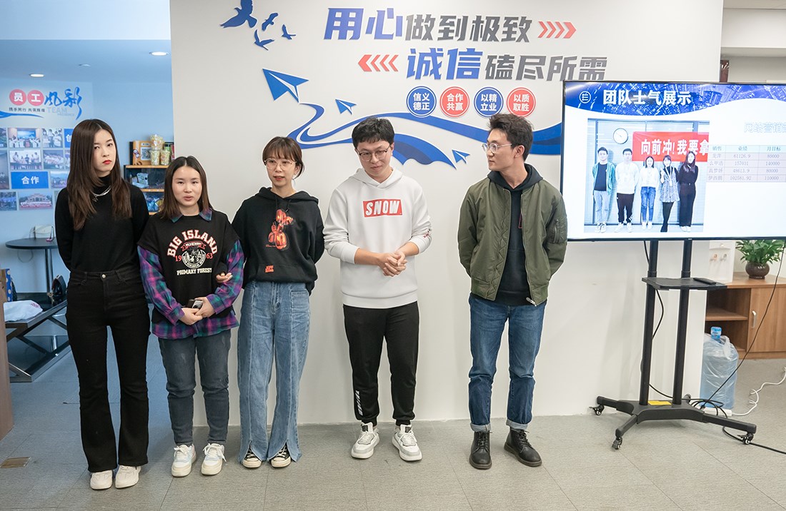 會議第一項是士氣展示,各個部門的小伙伴們上臺喊出自己的口號,展現(xiàn)出部門的風(fēng)姿與士氣。