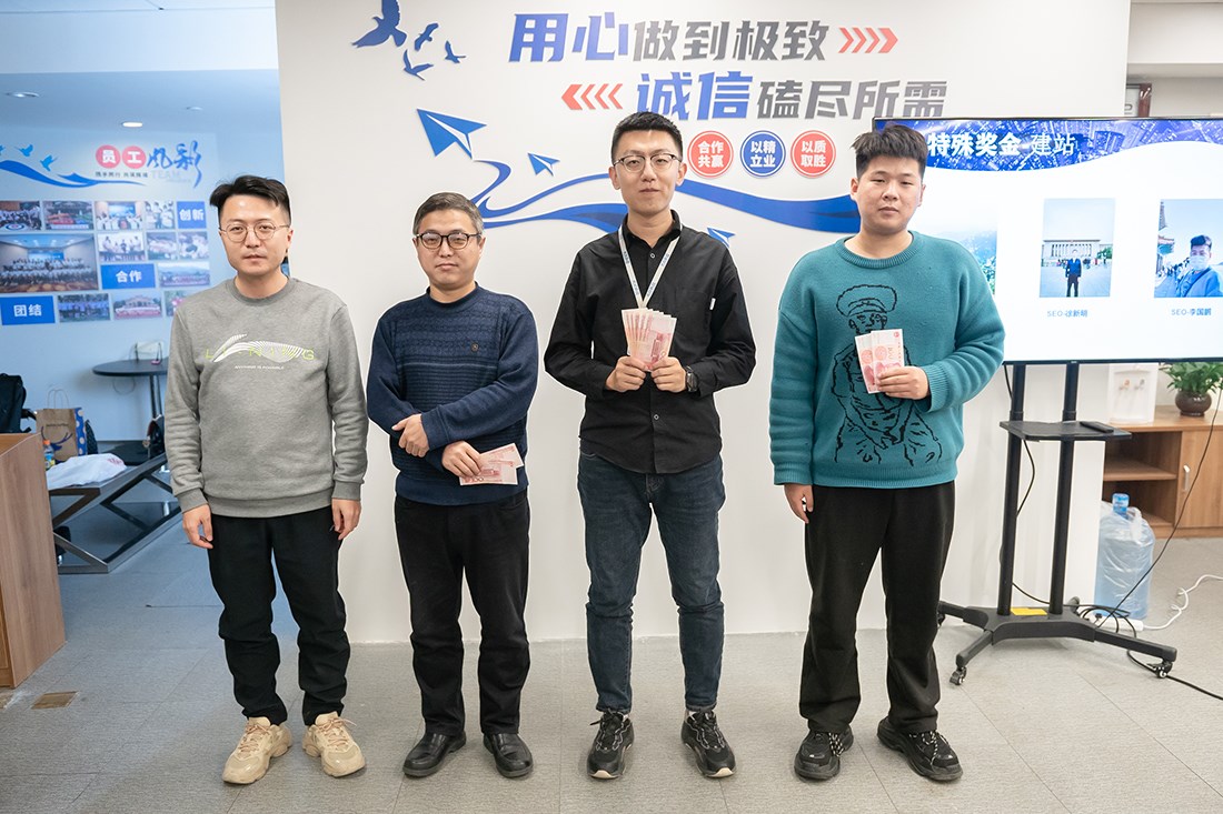 轉(zhuǎn)正儀式結(jié)束,會議第四項是優(yōu)秀員工表彰儀式,他們的努力在業(yè)績上得以證明,希望大家可以再接再厲,力爭上游。