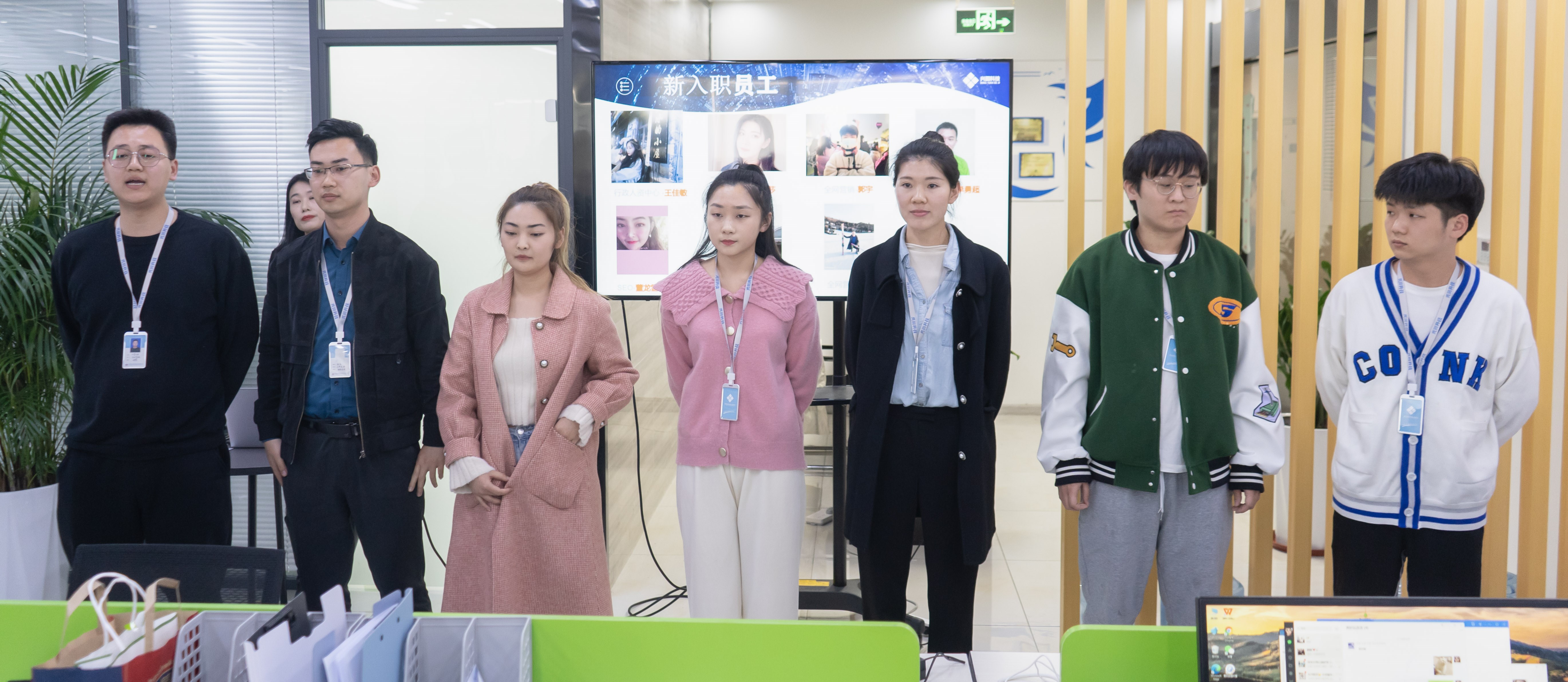 會(huì)議第一項(xiàng)是團(tuán)隊(duì)士氣展示,各個(gè)部門的小伙伴們上臺(tái)展現(xiàn)出自己自己團(tuán)隊(duì)的士氣與風(fēng)采。會(huì)議第二項(xiàng)是新員工入職儀式,上個(gè)月一共入職了7位小伙伴,各位的加入為興田注入了新鮮血液,增添了新生力量。