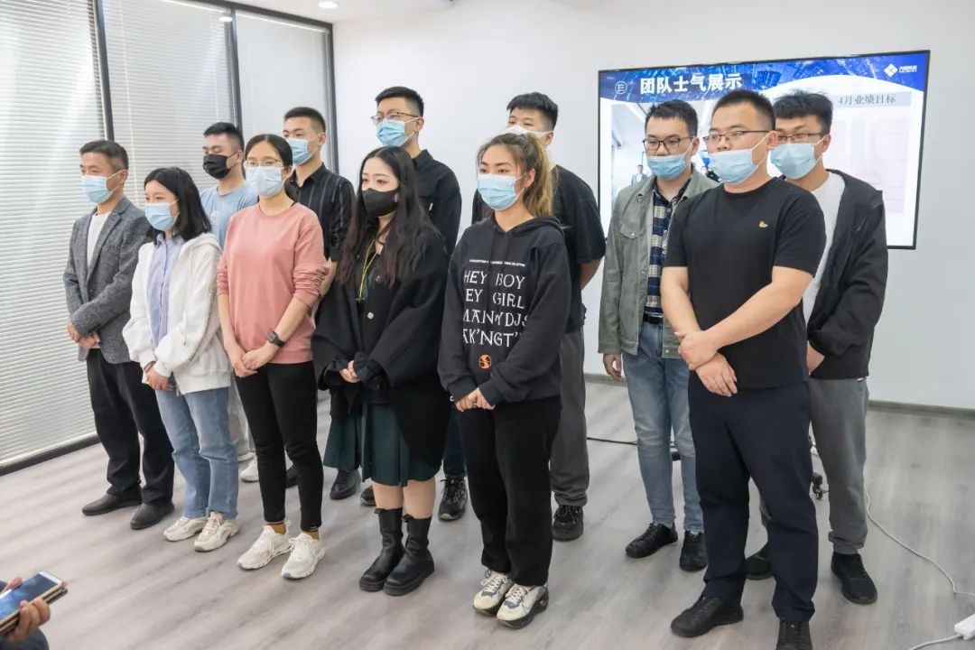 會議第一項,團隊士氣展示,各個部門的員工上臺,展示出了自己團隊的風(fēng)姿與高昂的士氣。