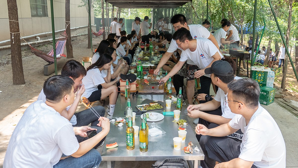 會議結(jié)束后就到了午餐時間,享受一頓美味,實屬人間一大快事。小伙伴們經(jīng)過一上午的團(tuán)建活動加開會,早已饑腸轆轆,然而我們也為此準(zhǔn)備很多美食,有烤全羊、冰鎮(zhèn)大西瓜等、其次是在做燒烤的時候很多小伙伴積極參與進(jìn)來,共同制作燒烤,場面異常熱鬧。